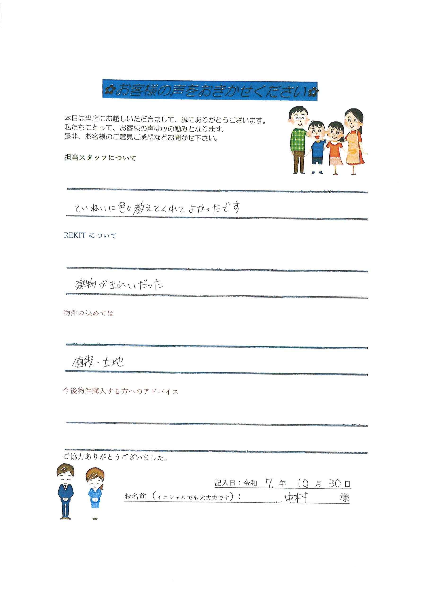 お客様の声 当店をご利用いただきまして誠にありがとうございました。 お客様より温かいお声は、 私たちにとって何よりの喜びです。 今後も信頼頂ける不動産会社を目指して参ります。 令和7年6月28日 お客様の声頂きました! 令和7年7月7月18日 お客様の声頂きました☻ 令和7年7月21日 お客様の声頂きました。 令和7年7月28日 お客様の声頂きました♡ 令和7年8月2日 お客様の声頂きました! 令和7年9月13日 お客様の声頂きました!! 令和7年10月19日 お客様の声頂きました! 令和7年10月30日 お客様の声頂きました‼